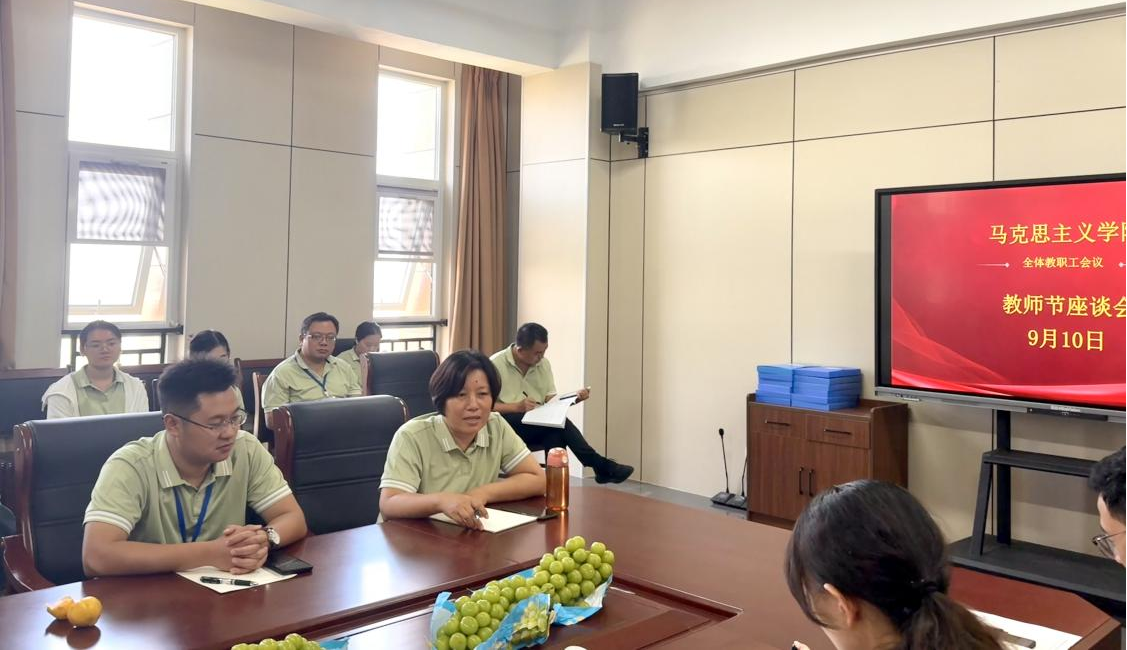 为庆祝第41个教师节,弘扬尊师重教优良传统,增强教师立德树人的使命感和荣誉感,9月10日下午,学院在会议室召开教师节座谈会。学院院长、教学秘书、各教研室主任及教师们齐聚一堂,共话育人初心,共谋学院发展。