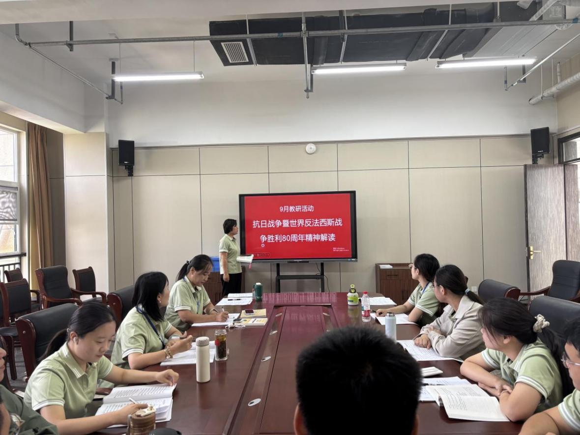 为纪念中国人民抗日战争暨世界反法西斯战争胜利80周年,深入挖掘抗战精神的时代价值,9月12日,马列教研室组织开展了“中国人民抗日战争暨世界反法西斯战争胜利80周年精神解读”专题教研活动。全体教师共同参与,通过学术研讨、案例分析和教学实践规划,深化对抗战精神的理论阐释与现实应用。