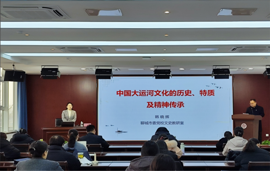 27日上午,聊城市委党校文史教研室副主任、副教授韩晓辉以《中国大运河文化的历史、特质及时代传承》为主题,解读了运河文化的形成脉络与核心内涵。透过运河,大家深刻感悟到其开放包容、兼收并蓄的精神特质。运河文化作为中华优秀传统文化的重要组成部分,彰显了中华文明生生不息的蓬勃生命力。下午,参训教师走进中国运河文化博物馆。在丰富的馆藏文物前,大家凝视古船与碑刻,聆听它们诉说过往的商贸传奇,触摸运河漕运的兴衰印记,感悟大运河承载的千年文明与民族智慧。在山陕会馆中,学员们读懂了石雕、木雕、砖雕及楹联碑刻所映射出的运河商业文明。