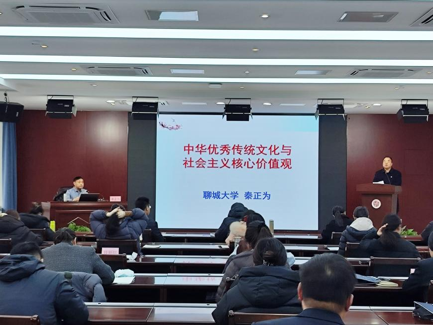 3月1日上午,孔祥雷老师通过展览式教学,讲述了中国共产党各阶段的伟大精神谱系。这些精神集中彰显了中国共产党的奋斗精神、团结精神和梦想精神,展现了一代又一代中国共产党人“为有牺牲多壮志,敢教日月换新天”的无私奉献。下午,聊城大学双拥学院院长秦正为讲授《中华优秀传统文化与社会主义核心价值观》。在对比中西方传统文化中的核心价值观时,秦教授深入剖析了中华文化的底蕴情怀,为学员们从文化根脉理解社会主义核心价值观打开了新视角。