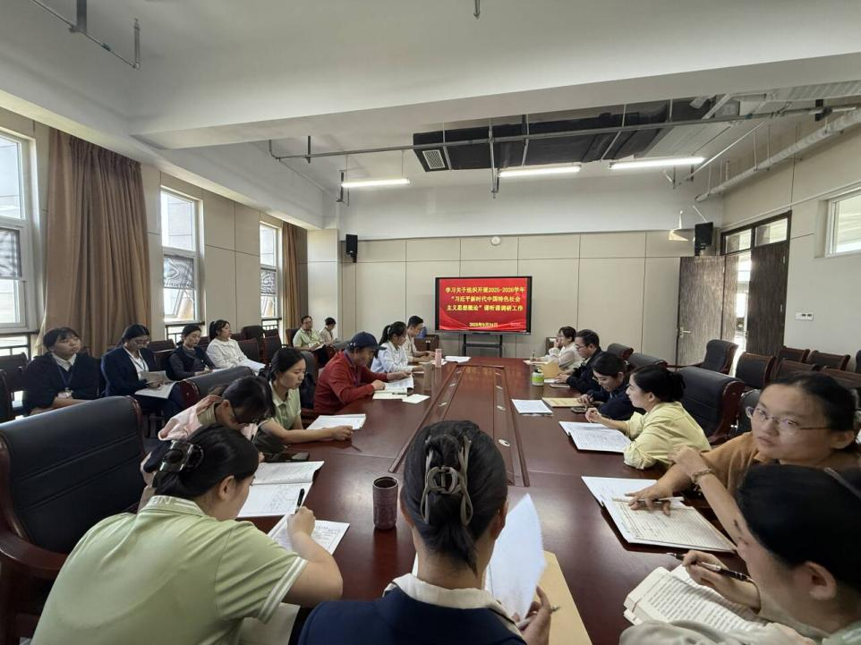 为贯彻落实习近平新时代中国特色社会主义思想,进一步提升思政课教学质量,优化课程教学设计,凝聚教师教学智慧,近期,我院主持召开《习近平新时代中国特色社会主义思想概论》听课调研会,活动由校领导督导主持,马克思主义学院院长李黎明、各教研室主任及思政课教师参与。